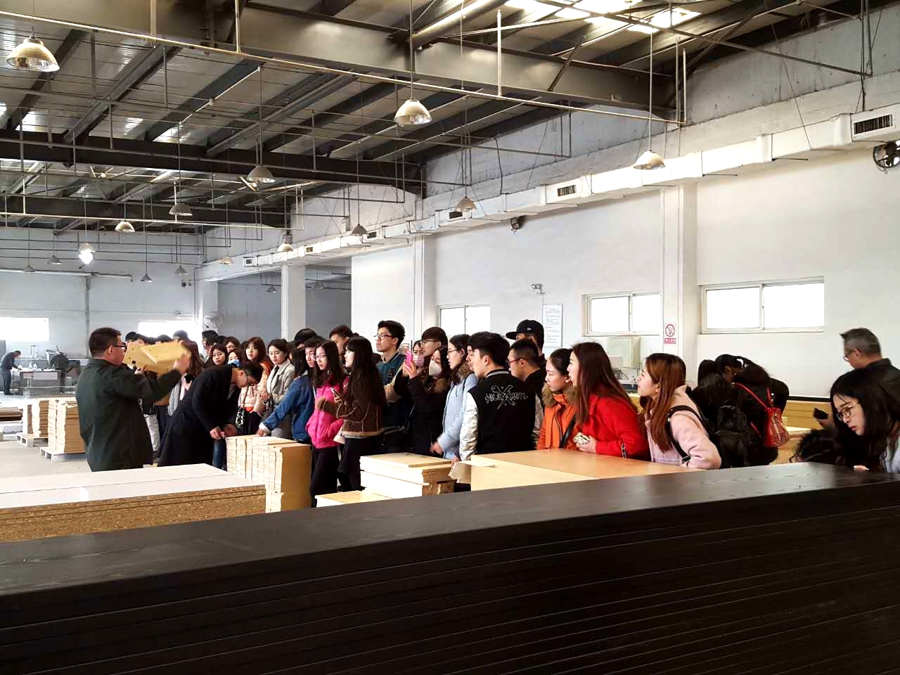 2016年3月8日上午,由河北師范大學(xué)美術(shù)與設(shè)計(jì)學(xué)院 車曉光等四位老師帶領(lǐng)的產(chǎn)品設(shè)計(jì)專業(yè)共60余名師生到常宏裝飾商業(yè)家具生產(chǎn)基地開(kāi)展了教學(xué)與實(shí)踐相結(jié)合的參觀學(xué)習(xí)活動(dòng)。