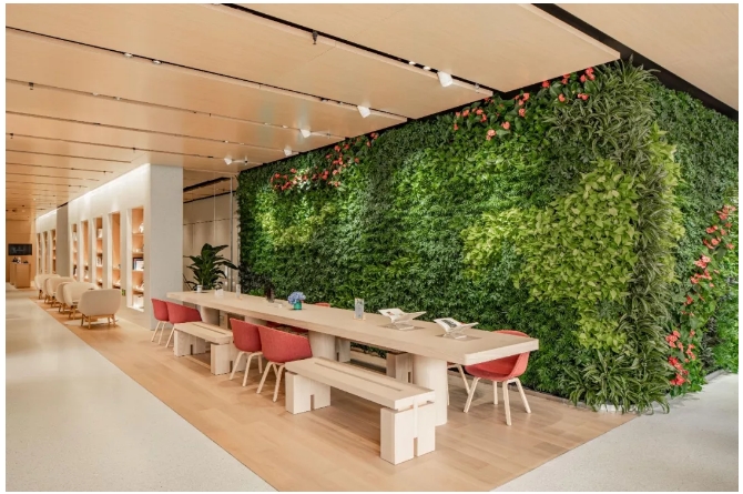 層層疊疊的綠色植物墻和兩面觀景落地窗構(gòu)成了一個(gè)獨(dú)屬聚會(huì)的空間,和朋友們來一場走心的分享吧!