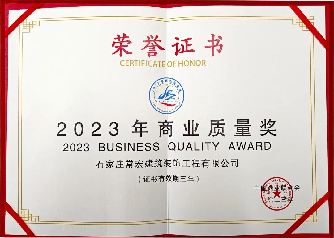 首頁> 關(guān)于我們> 公司新聞> 喜報 | 常宏裝飾榮獲“2023年商業(yè)質(zhì)量獎”