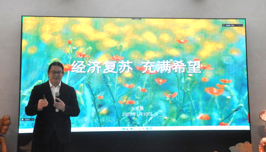 本次會(huì)議的承辦方、分會(huì)副會(huì)長(zhǎng)、上海邑通董事長(zhǎng)王克強(qiáng)致辭,他首先對(duì)能夠承辦店裝分會(huì)成立以來線下的第一次會(huì)長(zhǎng)辦公會(huì)擴(kuò)大會(huì)議表示榮幸和感謝,并以《經(jīng)濟(jì)復(fù)蘇 充滿希望》為主題作了行業(yè)分析報(bào)告,通過靚麗、多彩的界面?zhèn)鬟f給大家未來希望和信心。他從消費(fèi)者疫情后消費(fèi)信心的提升、高端化勢(shì)頭的延續(xù)、各線城市實(shí)際的消費(fèi)變化、產(chǎn)品為王、本土企業(yè)正在贏得市場(chǎng)這五方面給大家分析了國(guó)際國(guó)內(nèi)社會(huì)的宏觀環(huán)境和消費(fèi)的趨勢(shì),商業(yè)店裝行業(yè)的發(fā)展未來可期,點(diǎn)燃了會(huì)員企業(yè)對(duì)未來發(fā)展的信心和激情。